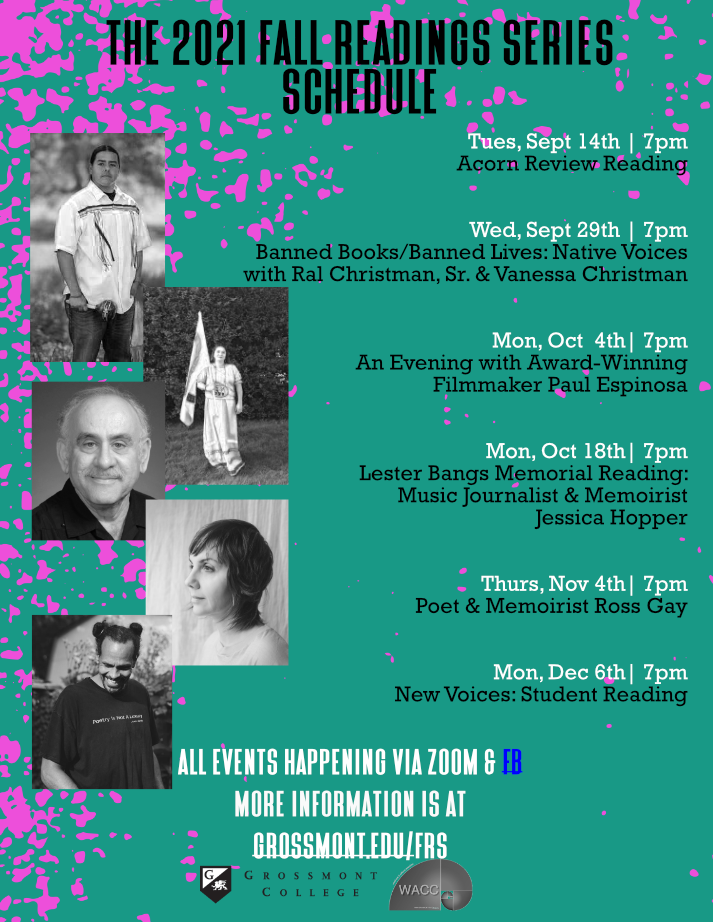 The annual Fall Reading Series presents a season of events celebrating literature, showcasing award-winning authors, 和 honoring the inspiration to write. Events are sponsored by the 英语系 和 创意写作计划 of Grossmont大学, as well as a variety of other campus agencies 和 programs.