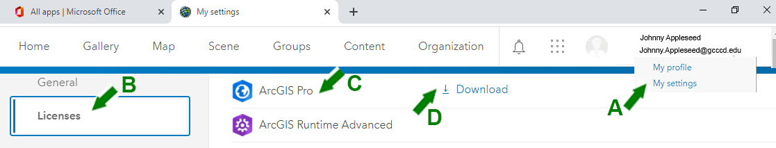 学生可以通过登录他们的@gcccd.edu SSO帐户访问ArcGIS Online: