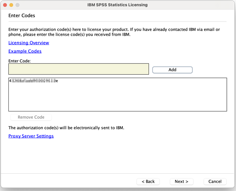 - 在 输入代码 screen, paste the license code from your student email, as explained above. 点击 on the 添加 按钮,它应该列在下面: